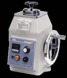 本機(jī)系機(jī)械式鑲嵌機(jī),旋轉(zhuǎn)機(jī)體外手輪,通過一對(duì)傘齒輪帶動(dòng)機(jī)體內(nèi)絲桿使壓制試樣的下模在剛模套內(nèi)上下移動(dòng),熱因性塑料連同鑲嵌的試樣的試樣在加熱的條件下成形。試樣制備過程中的成形壓力由固定在集體內(nèi)的彈簧自動(dòng)補(bǔ)償、試樣壓制的壓力可由信號(hào)燈給以指示。